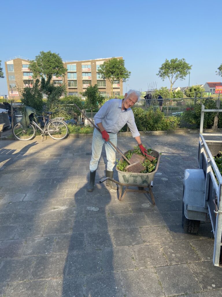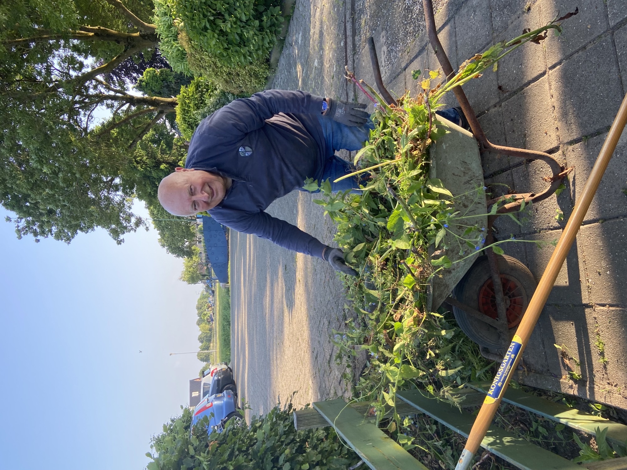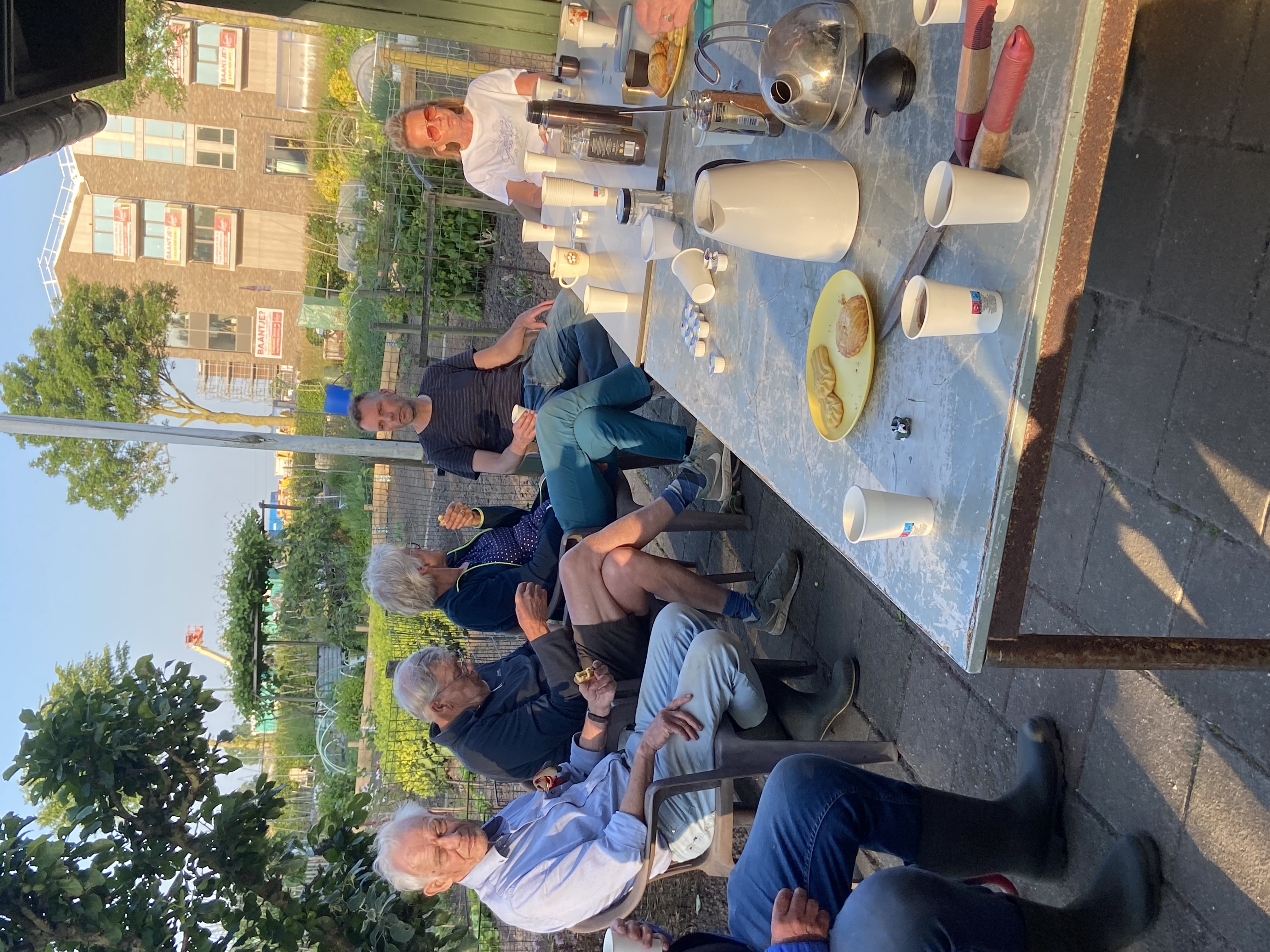 Bij de koffie/theepauze was het een gezellige boel en na al dat werken gingen de koeken er wel rap in. Er werd een heleboel onkruid verwijderd en in de kar gekieperd. Aan het eind van de avond kon iedereen tevreden terugkijken op het vele werk dat werd verzet.